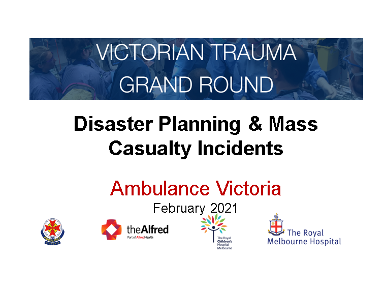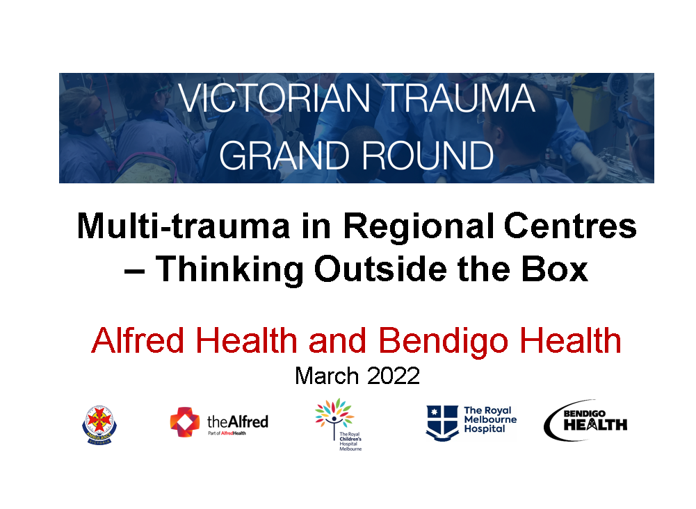 The Victorian Trauma Grand Round is a collaborative initiative to provide a forum for healthcare professionals involved in acute trauma care in Victoria to explore and debate all aspects of trauma management.